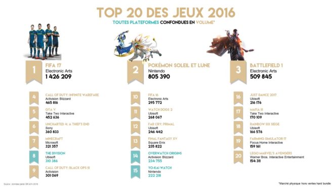 New data provided by SELL reveals France’s top 20 best-selling games of 2016. Two Nintendo-published games made the list.