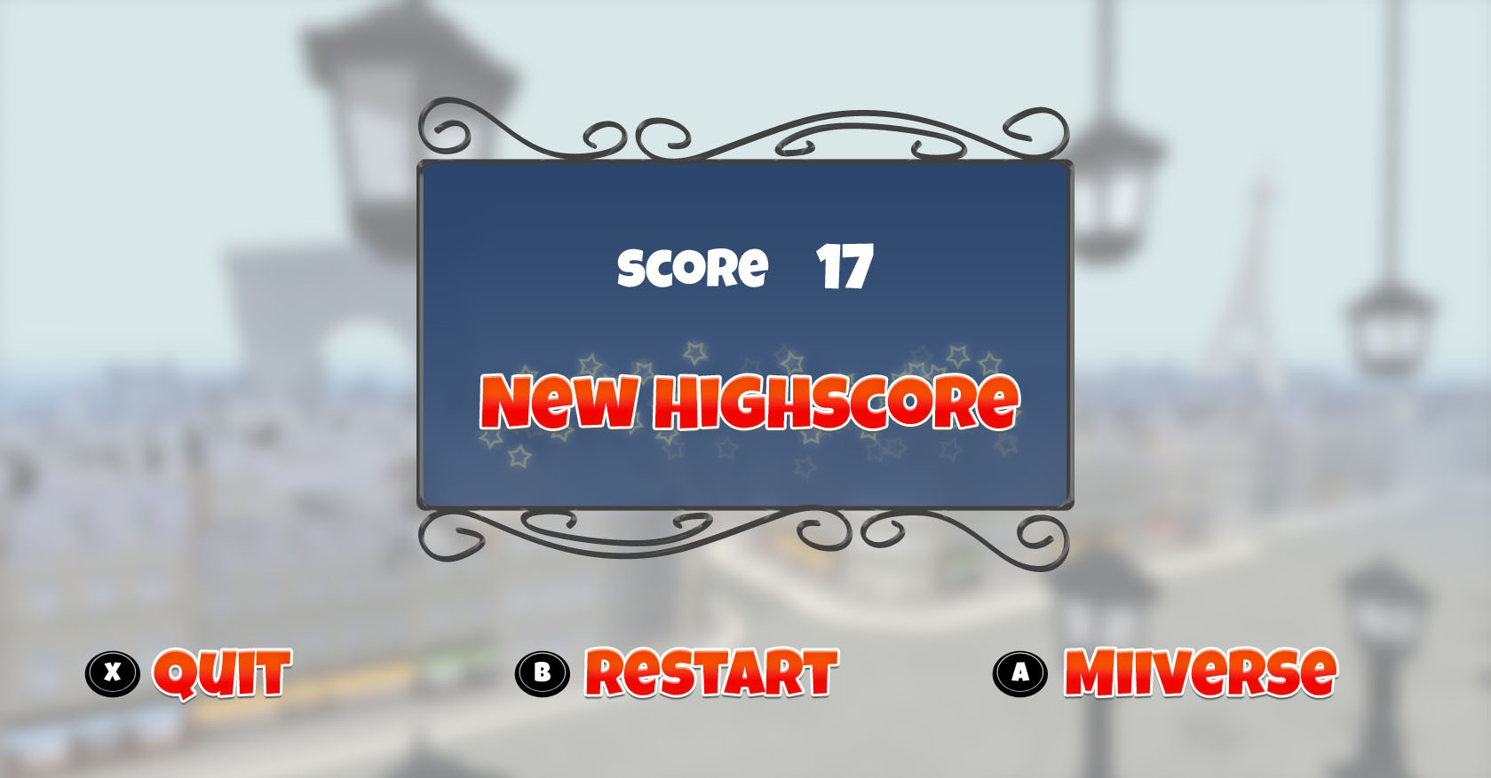– Post your score in Miiverse™ with pre-filled text and automatic screenshot function