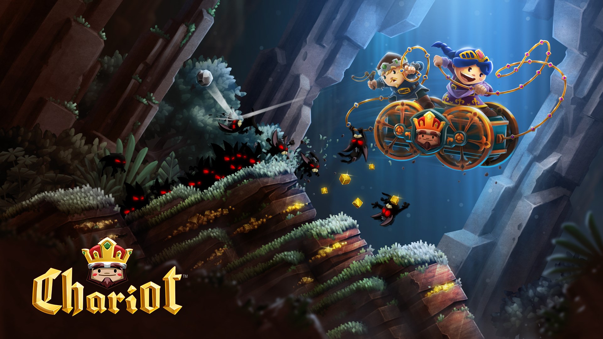 Release Date Fall 2014Chariot is a humoristic physics-based couch co-op platformer in which a brave princess and her suitor carry a funeral wagon through anicent caves, fending-off swarms of looters while amassing riches, to bury the King’s remains in a worthy gold-filled tomb.