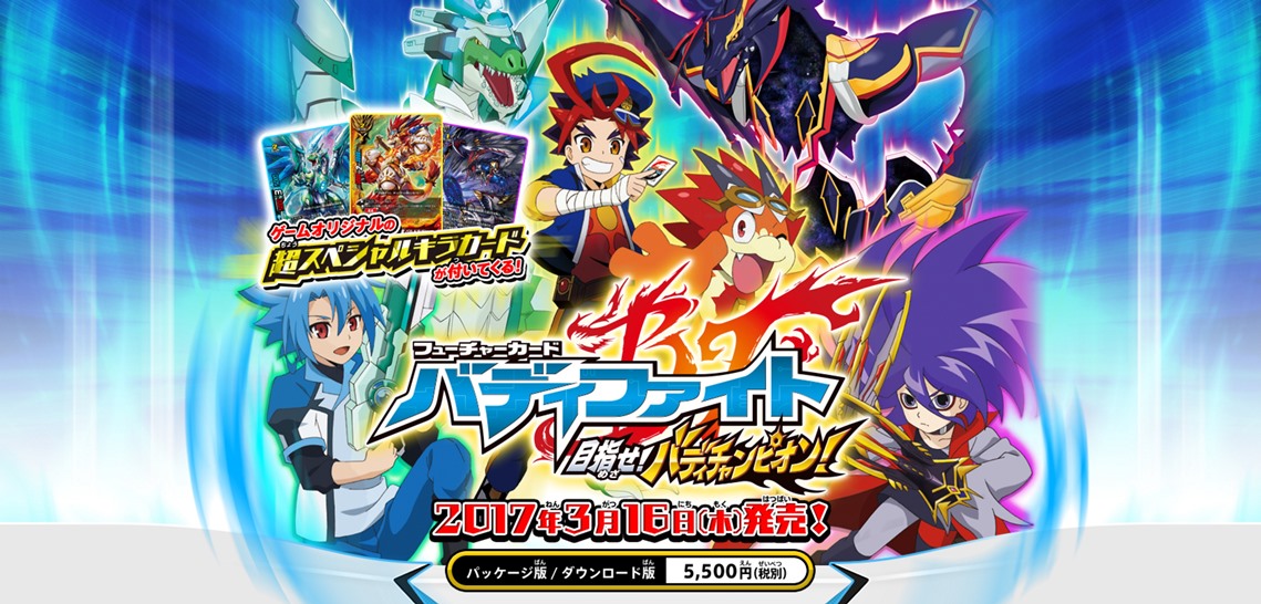 Future Card Buddyfight: Mezase! Buddy Champion! launches in Japan on March 17 for 5,940 yen. The physical version will have bonus Super Special Glittering Cards.