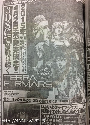 Terra Formars: Fierce Battle on the Crimson Planet received a release date in the latest issue of Young Jump. It will be available in Japan on April 2, the magazine confirms. Check out the scan above for a preview of Terra Formars’ boxart.