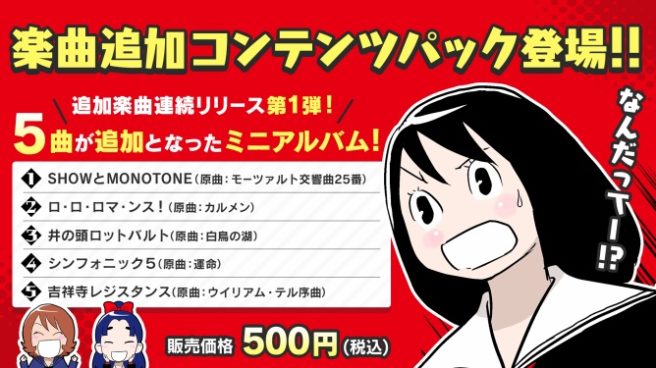 The DLC includes a total of five songs. SHOW & MONOTONE, Ro・Ro・Roma・nce!, Turkish Signal Gun, Sound! The Fourth Dimensional World Song!, and Inokashira Rothbart are featured in the pack.