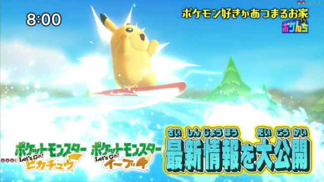 The Japanese variety show Pokenchi has announced that it will have an exclusive Pokemon: Let’s Go, Pikachu / Eevee trailer next week. This will appear during the episode airing on September 16. At the moment, details about the trailers are unknown.