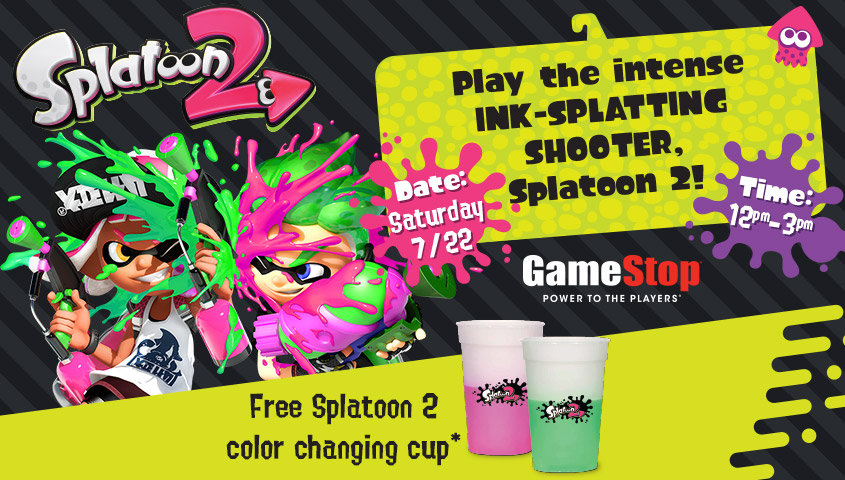 Those who try out Splatoon 2 will receive a free Splatoon 2 color changing cup while supplies last. Note that cup colors will vary.
