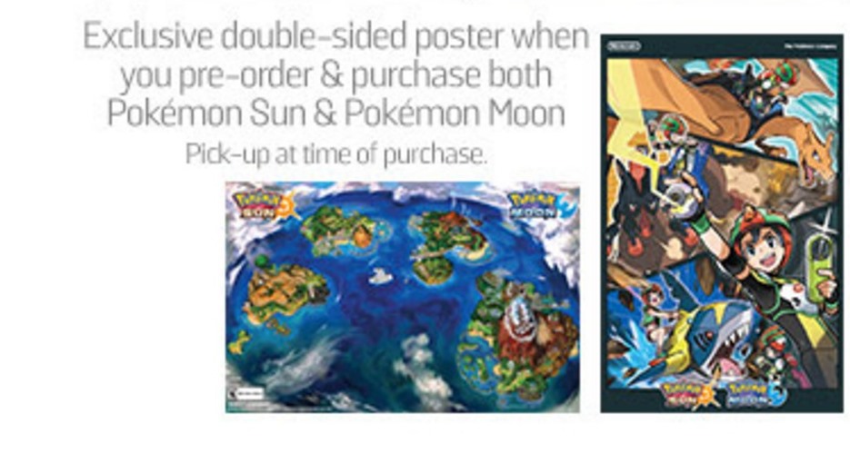Pre-order Pokemon Sun and Pokemon Moon at GameStop, get a poster