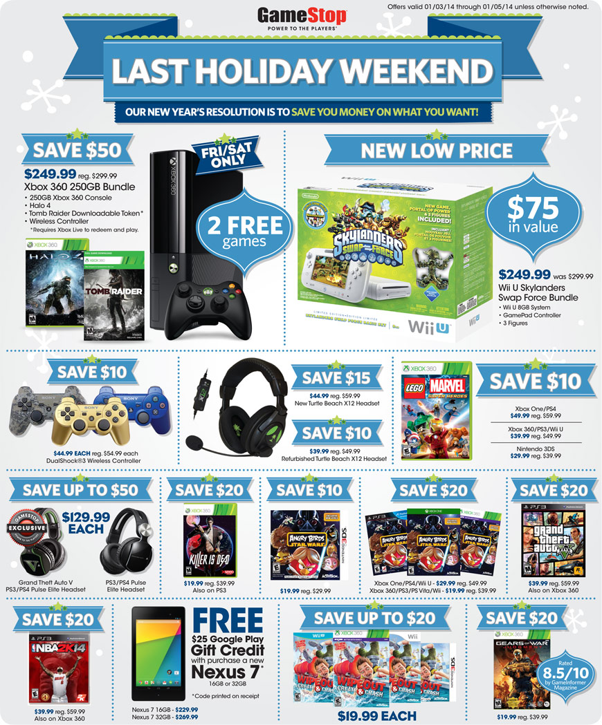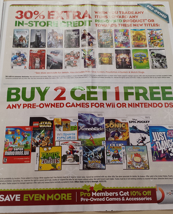 GameStop will be initiating new deals this Sunday, a leaked circular reveals. The latest set of items, shown in the ad above, last through December 21. Among the highlights: a buy 2, get 1 free offer on all Wii and DS games. You can find the full set of discounts and deals above.