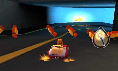The hoggish cat lies down a hot tires! Fat cat on the slopes! In the fast-paced kart racing game Garfield competes against his friends. Clearly, in this show may not be missing Jon and Odie. Unbridled fun in three difficulty levels and four play modes await you: Quick Race, Championship, Time Trial and daily challenge. But that’s not all: Via Wifi you can login with up to three friends in the local network to sixteen different routes romp. Who is the most skillful driver or at the most insidious? Throw your competitors obstacles in the path and take them the right of way. But take heed, your friends do not sleep. A lasagne is a perfect barrier to obese cat. Gather items in to supercharge your kart and race to the finish line first as crazy hats and various spoilers. With Garfield Kart for 3DS even make your assembly fun!