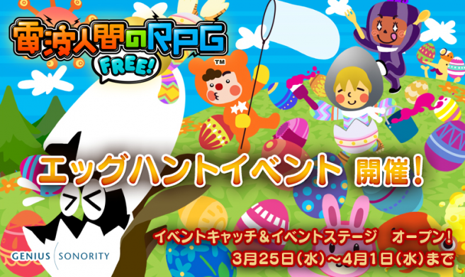 Denpa Ningen no RPG Free! will be having an egg hunt that will run from 3/25 to 4/1. The limitied time Egg Hunt will allow you to be able to capture special egg shaped Denpa men as well as encounter a special Rabbit Denpa man.