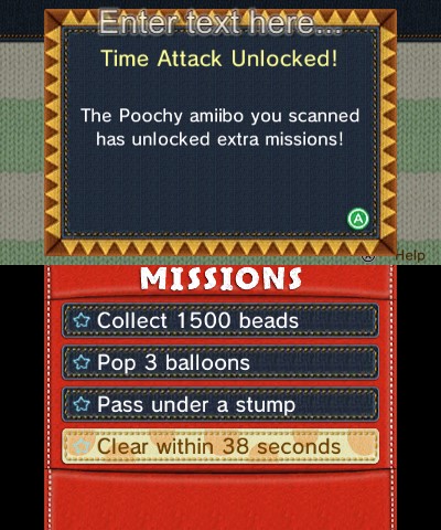 By scanning the Yarn Poochy amiibo, players can summon Poochy to help them out. When you scan the amiibo during Poochy Dash stages, you will instead unlock fast-paced Time Attack challenges, which reward you with new Poochy patterns when you beat them.