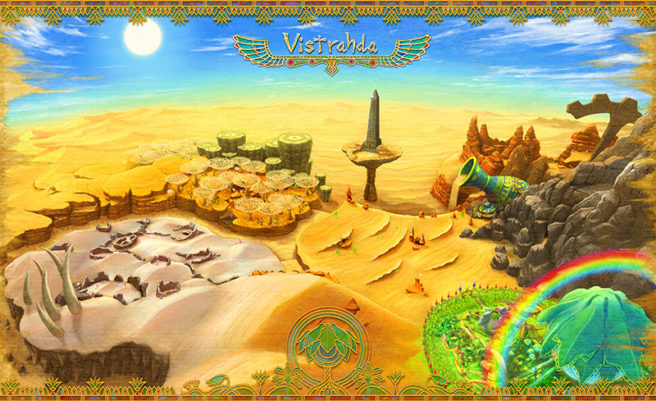 In the past, the desert world Vistrahda used to be lush green with lots of oases, and was brimming with life. However, due to the appearance of Chaos, the desert animals turned into Chaos Monsters, plants could no longer be raised, and the oases around the world necame reduced. Right now only a few oases and Beastmen settlements remain.