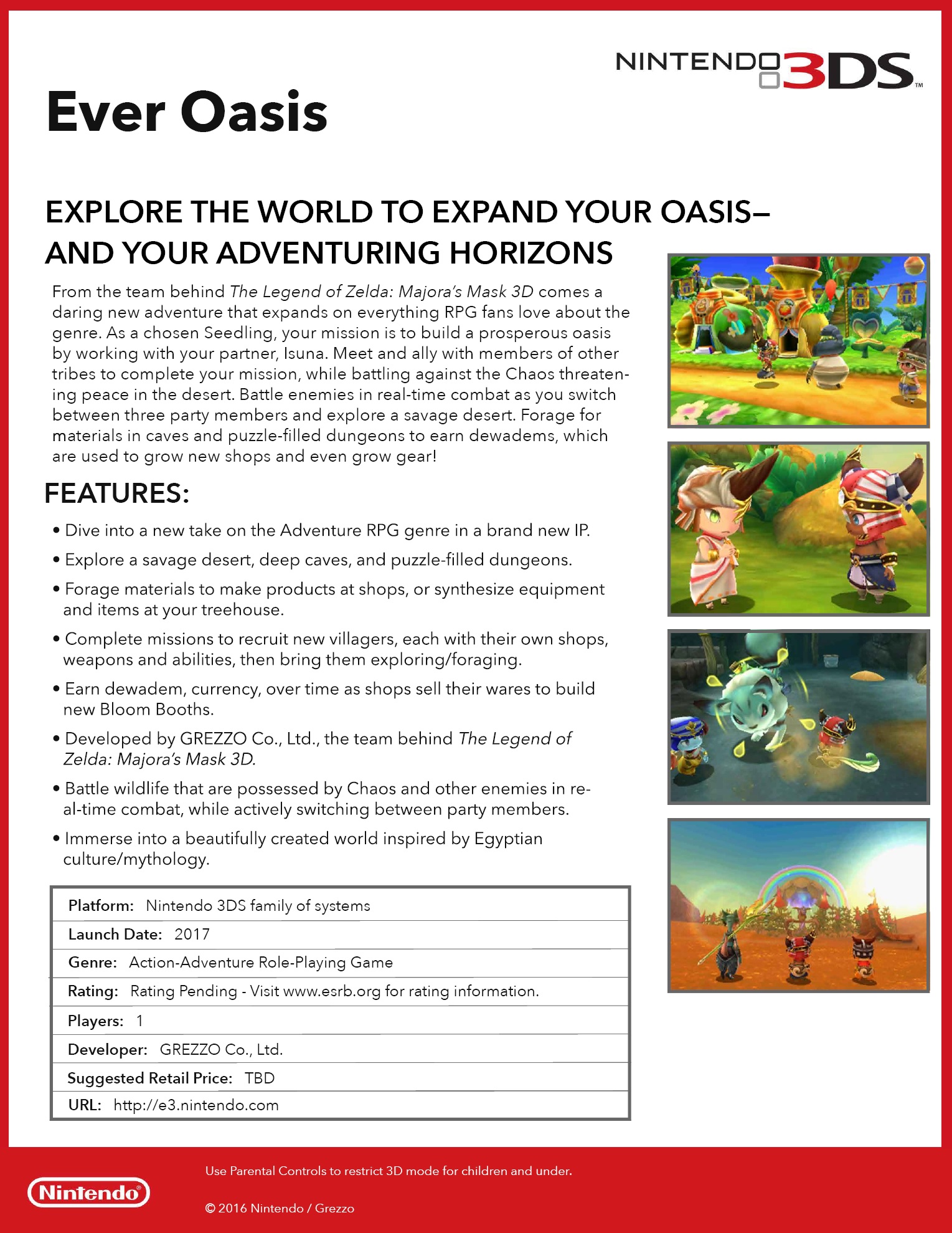 Ever Oasis screenshots, art, fact sheet