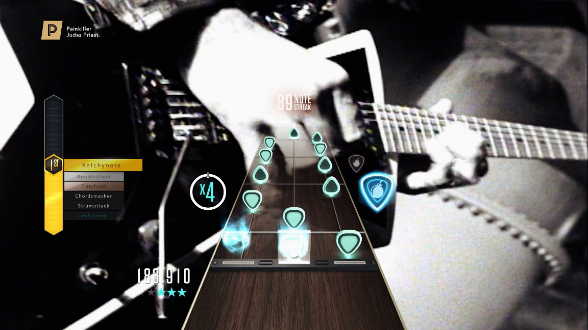 – Another bonus is showing off the personalisation items you’ve earned in GHTV. When a battle kicks off, both you and your opponent will see each other’s playercard and note highway on screen.
