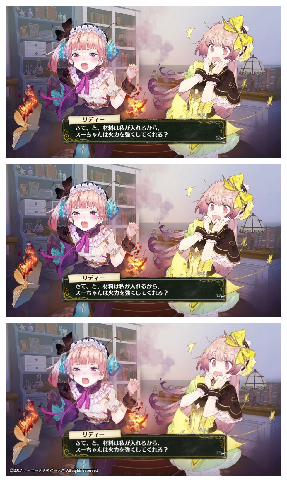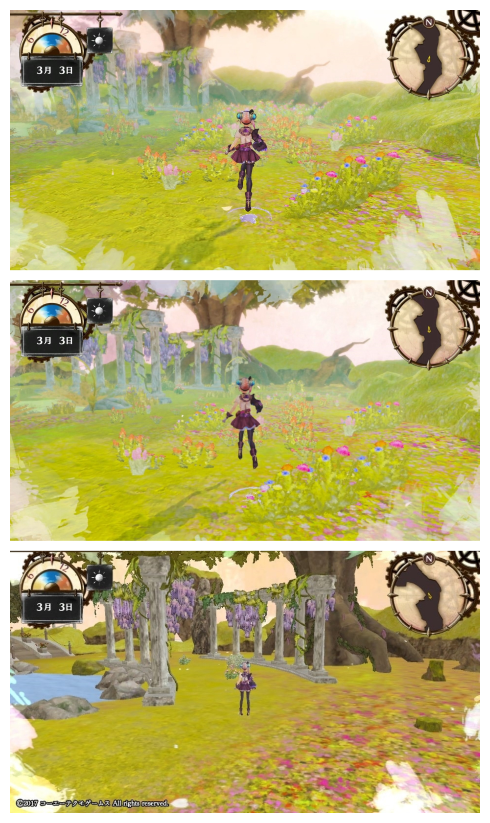 Koei Tecmo released a few new Atelier Lydie & Suelle: Alchemists of the Mysterious Painting screenshots comparing all versions of the game. You can see the different comparisons below. PS4 is on top, Switch is second, and PS Vita is last.