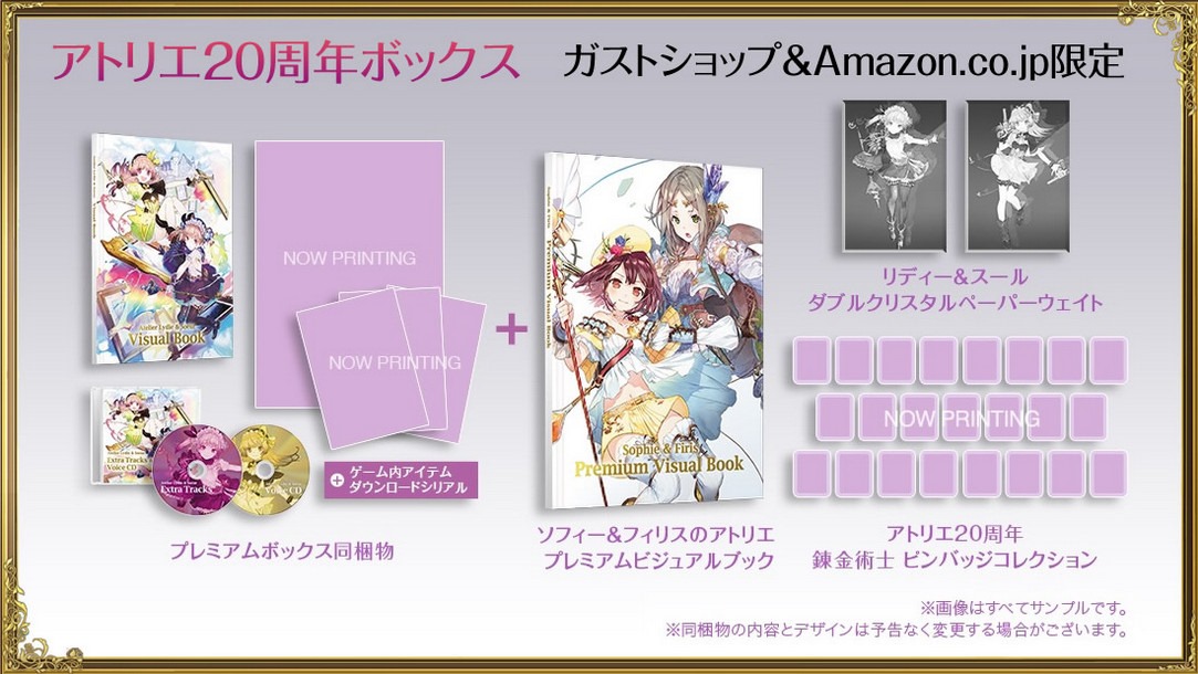 There’s also the “Atelier 20th Anniversary Box”, celebrating the 20th anniversary of the series. It’s exclusive to Amazon Japan and Gust’s own online store. It includes everything from the Premium Box plus: