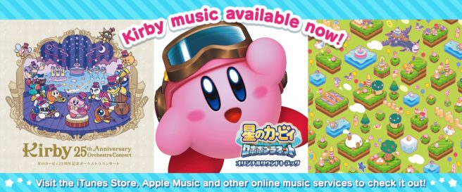 We can confirm that each one is already live on iTunes in the US. You can find Kirby Memorial Arrangements here, Kirby: Planet Robobot Original Soundtrack here, and Kirby 25th Anniversary Orchestra Concert here.
