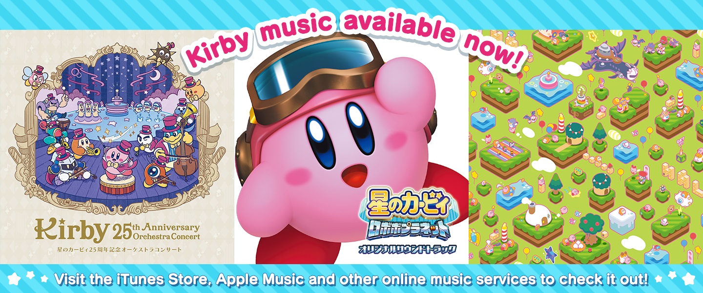 A trio of Kirby albums are now available through digital music services. HAL Laboratory is releasing Kirby Memorial Arrangements, Kirby: Planet Robobot Original Soundtrack, and Kirby 25th Anniversary Orchestra Concert.