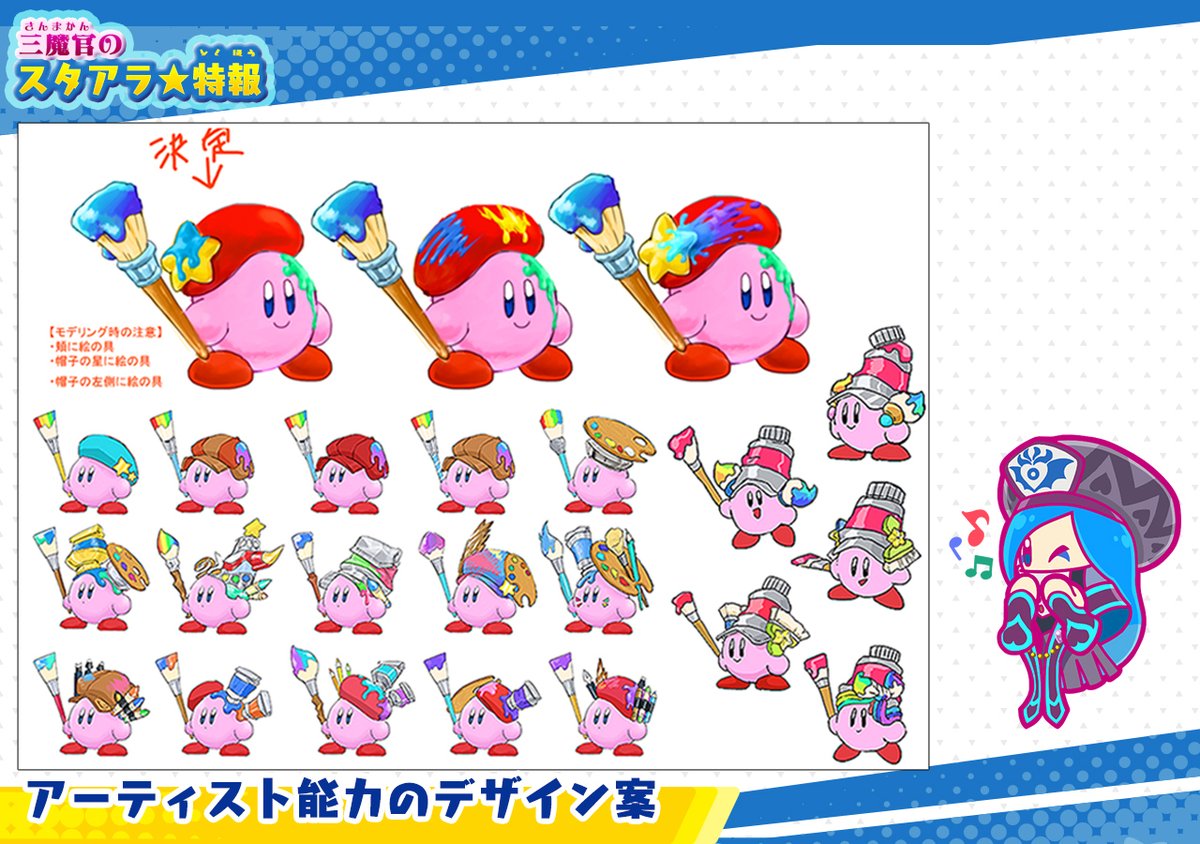 Another piece of Kirby Star Allies concept art is in, this time focusing on Vividria. As you can see above, a paintbrush was featured among the early designs.