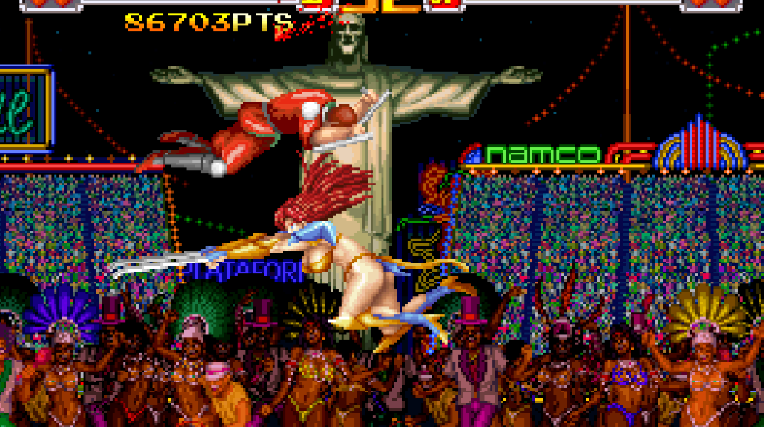 A sports game released by Taito in 1990, the game can also be played against other players as well as against the CPU. In it, players choose one of eight different countries and compete against the other seven. Rough play is allowed, as long as you don’t get caught.