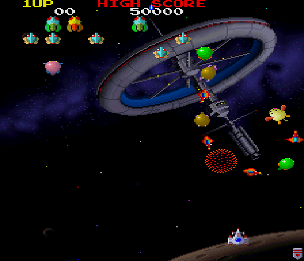 First released in 1987 by Namco (now Bandai Namco), Galaga 88 is a shooting game in which you are tasked with crossing dimensions to the planet Galaga to end the threat of the re-emerged Galaga Legion. The game is noteworthy for allowing you to combine three fighters to power-up.