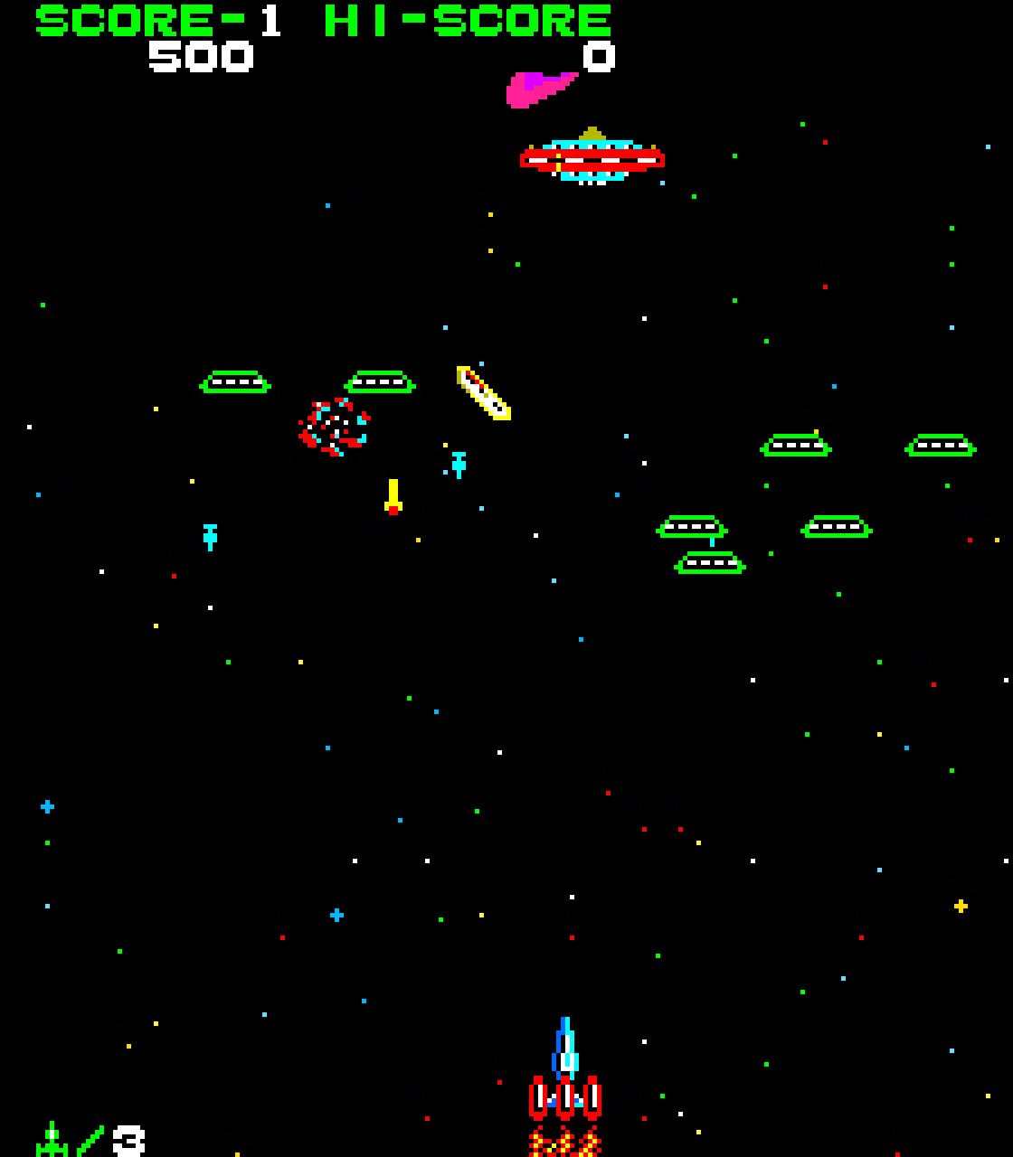 Space Cruiser is a space shoot ’em-up game produced by Taito in 1981. In it, players control a ship that can use upgrades to attack enemy UFOs.