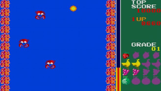 Tehkan originally made Swimmer in 1982. In the action game, players swim up a river and avoid obstacles along the way.