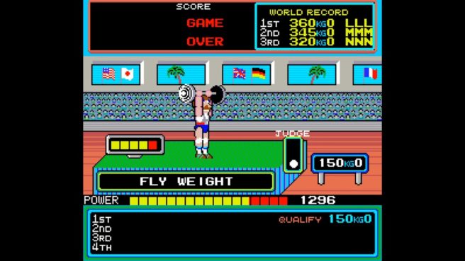 Hyper Sports originally debuted in arcades back in 1984. It features archery, swimming, weight lifting, pole vault, skeet shooting, triple jump, and long horse events.
