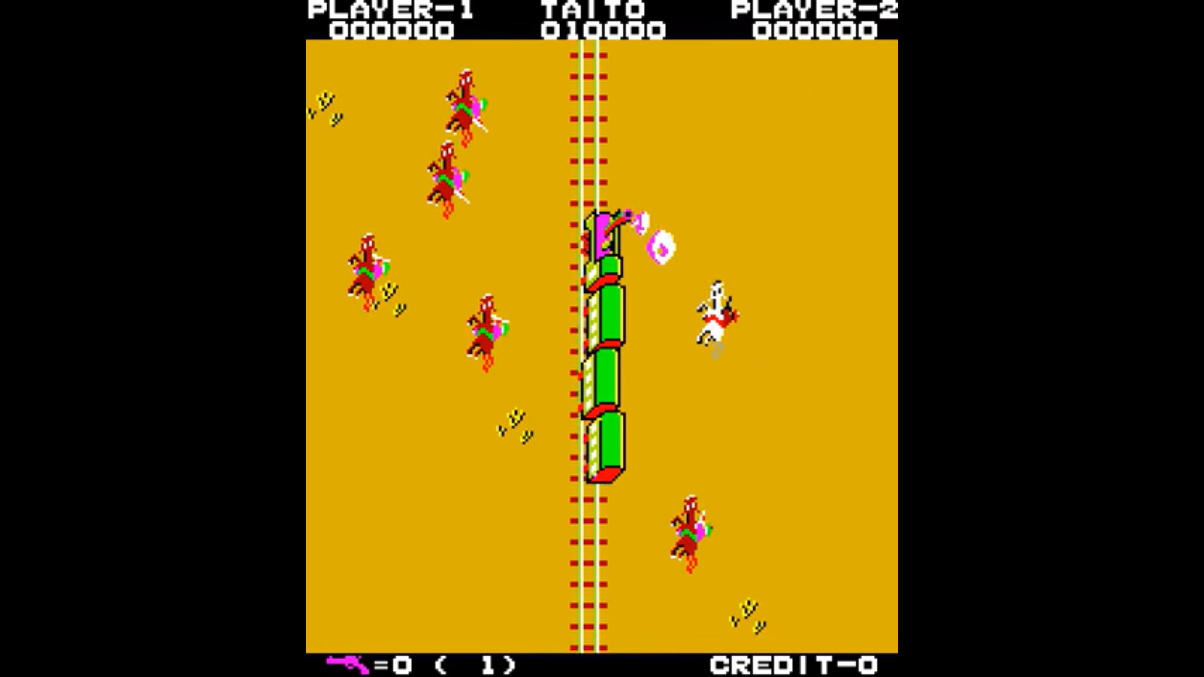 Taito originally made Wild Western back in 1982. In the game, a group of bandits are going after a train, so it’s your job to protect it and prevent three of them from entering. You’ll also have to avoid obstacles and bullets.