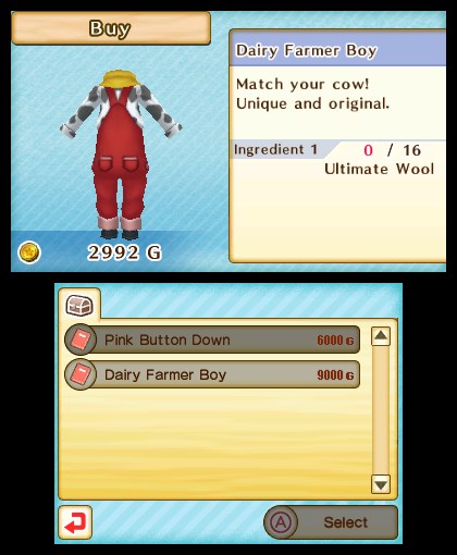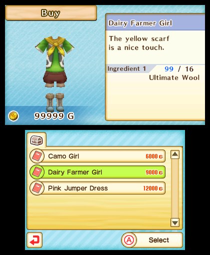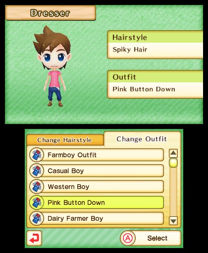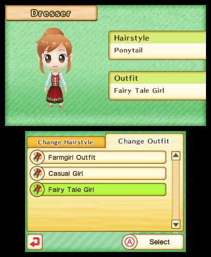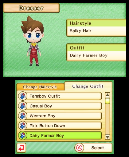 Natsume has added new outfits and hairstyles with today’s DLC. There are three outfits for the female and male protagonists, including a new Dairy Farmer getup for each. Content can be accessed from a player’s dresser.