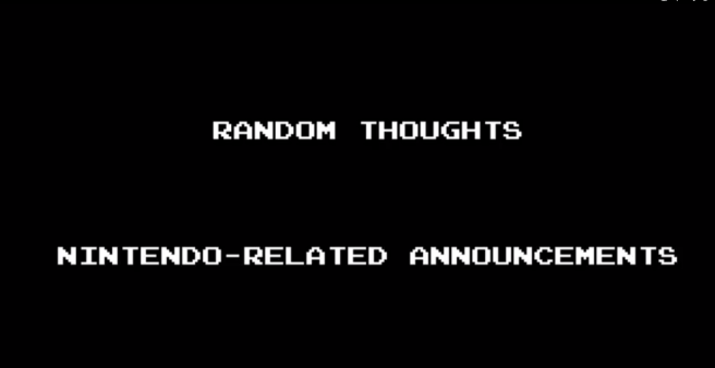 There were quite a few announcements last week, and a number of them were Nintendo-specific. I figured I’d take a few moments to recap some of the news in the latest “Random Thoughts” video. Although it’s not anything special, I hope you’ll enjoy it in any case!