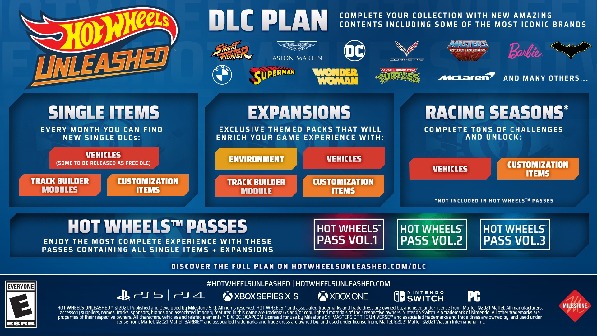 Mattel and Milestone today unveiled its DLC plans for the racer Hot Wheels Unleashed. Three Hot Wheels Passes will unlock a set of special content from Hot Wheels originals as well as from Barbie, DC, Masters of the Universe, Street Fighter, Teenage Mutant Ninja Turtles and OEMs like Aston Martin, BMW and McLaren and many others.