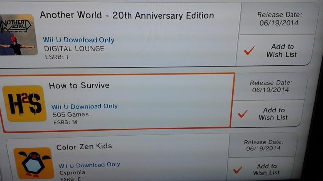 Another World – 20th Anniversary Edition, How to Survive, Color Zen Kids listed for release on the Wii U eShop this week