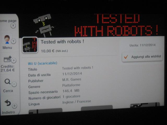 M.R. Games is releasing “Tested with robots!” on the European Wii U eShop next Thursday. It will be available on December 12 for €10.00