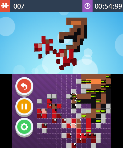 “Tappingo” is a new puzzle game for the digital store. It has players solving pixel art puzzles by making numbered blocks extend into lines. The lines continue on until they hit something, making things more difficult. You’ll need to use other blocks and lines to stop the line at the correct length for the best results.