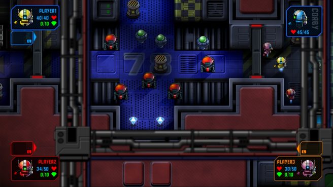 Lots of robots, lots of lasers, lots of aliens, lots of explosions! The numerous retro arcade influences are front and center, but spiced up with a colorful modern style, a generous helping of sci-fi intrigue, and a dash of RPG ELEMENTS!
