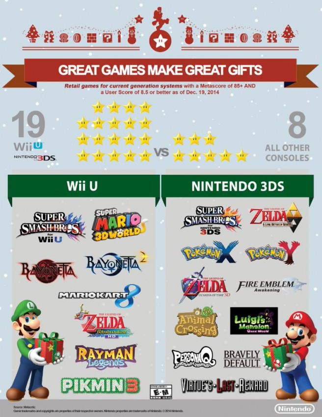 Nintendo is promoting the success of Wii U and 3DS games on Metacritic in a new infographic published today.
