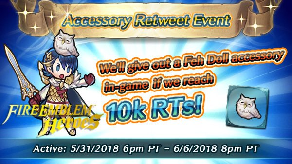 Simply retweet the message below to help contribute to the goal. If the total number exceeds 10,000 (combined with the numbers from related tweets in other regions), all players will get a Feh Doll accessory as a present.