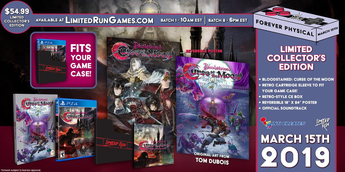 Limited Run Games has announced a partnership with Inti Creates to produce a physical version of Bloodstained: Curse of the Moon. A special collector’s edition will also be available, pictured below.