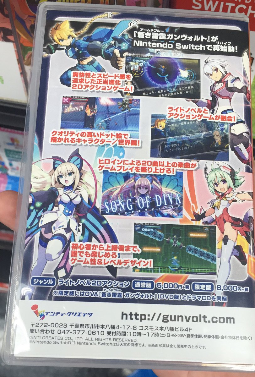 At least in Japan, the new Switch version of Azure Striker Gunvolt: Striker Pack is seeing a physical release. Get a look at the boxart below.