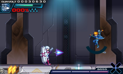 – Power Grab: Copen fires three special shots that temporarily freeze Gunvolt’s abilities; based on the psychic elements of Carrera