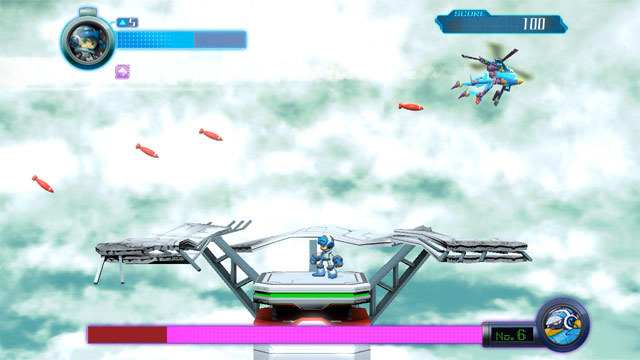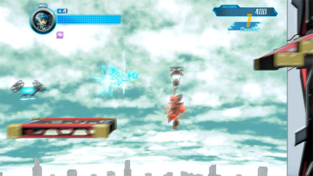 Mighty Gunvolt features a complete 8-bit style. Gunvolt, Eriko, and Beck are included as playable characters.