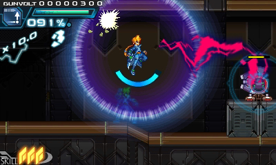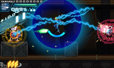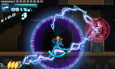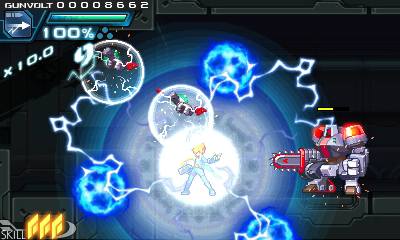 – Lightning Sphere (SP Cost: 1) – Spheres of electricity appear around Gunvolt and deliver consecutive damage to enemies