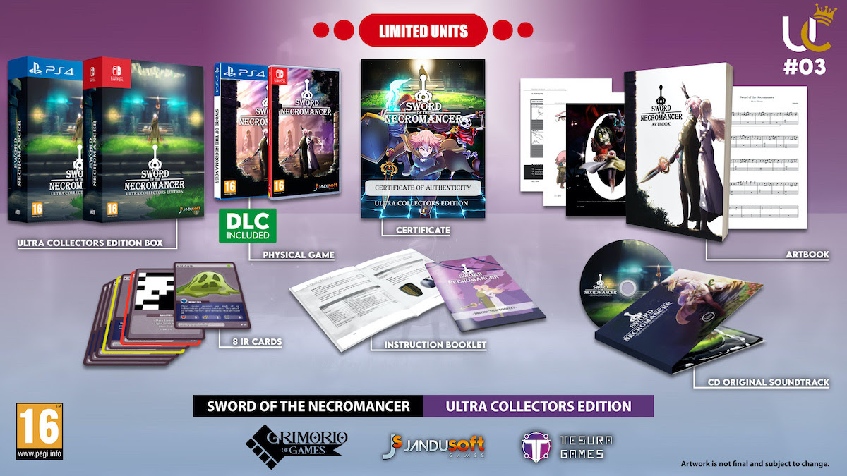 Grimorio of Games and JanduSoft, in collaboration with distributor Tesura Games, have announced a new physical release for Sword of the Necromancer. Fans can purchase either a standard copy or “Ultra Collectors Edition”.