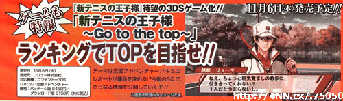 The Prince of Tennis II: Go to the Top will be available in Japan on November 6. Pricing is set at 6,458 yen. The download version will cost 6,150 yen.