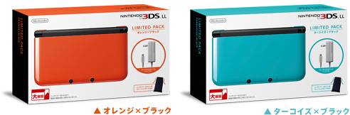 Nintendo has just revealed a pair of 3DS XL Limited Packs for Japan. Consumers will have two color variations to choose from: Orange X Black and Turquoise X Black.