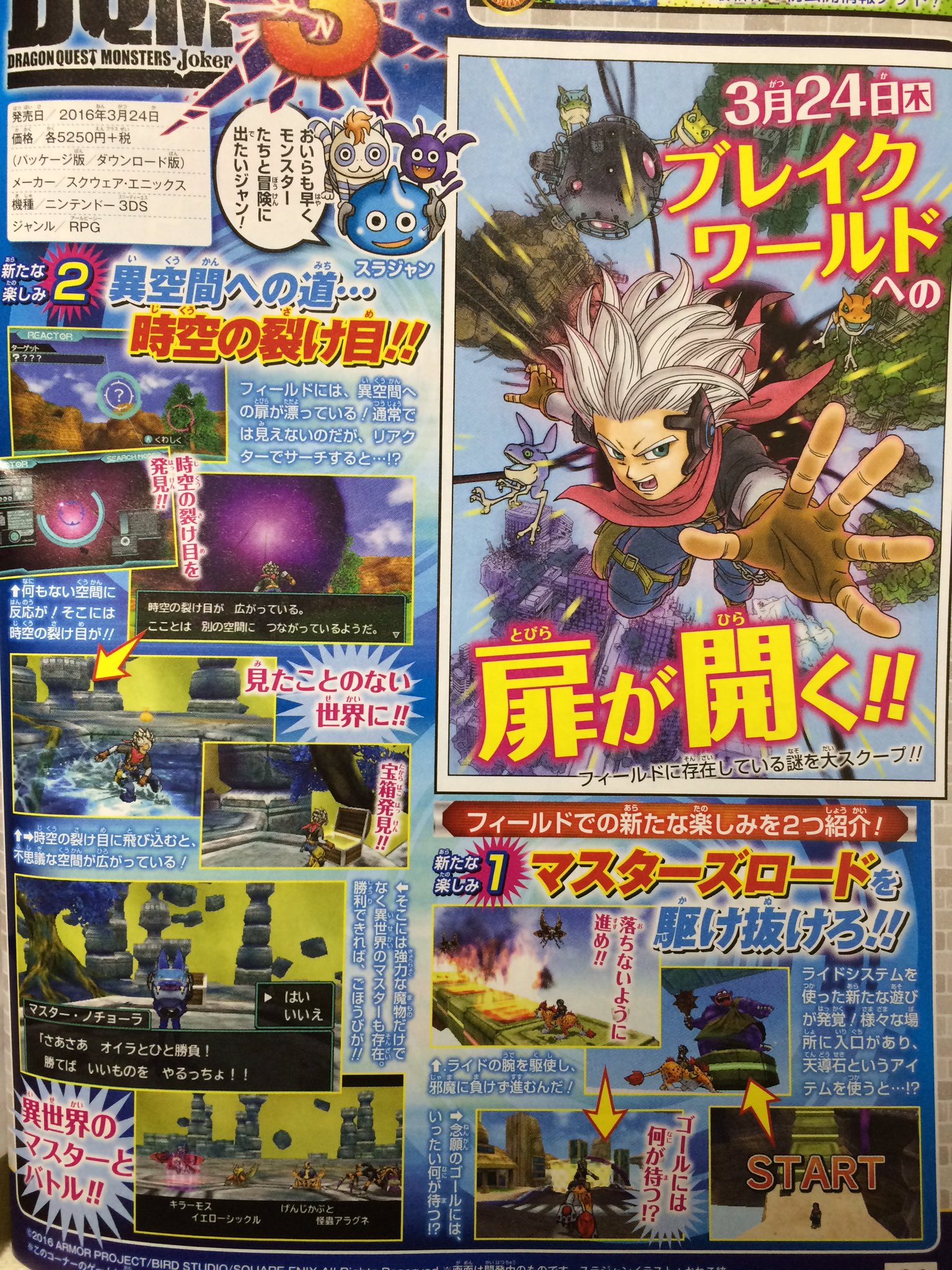 Dragon Quest Monsters: Joker 3 was revealed for 3DS in the latest issue of Jump. A higher-quality scan is attached above, and we also have a comment from series creator Yuji Horii.