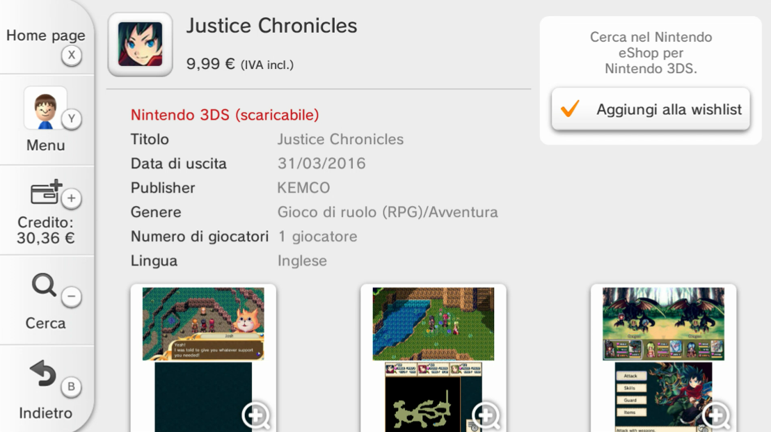 Another Kemco RPG is slated for the European 3DS eShop this month. On March 31, Justice Chronicles will be available. Pricing is set at €9.99.