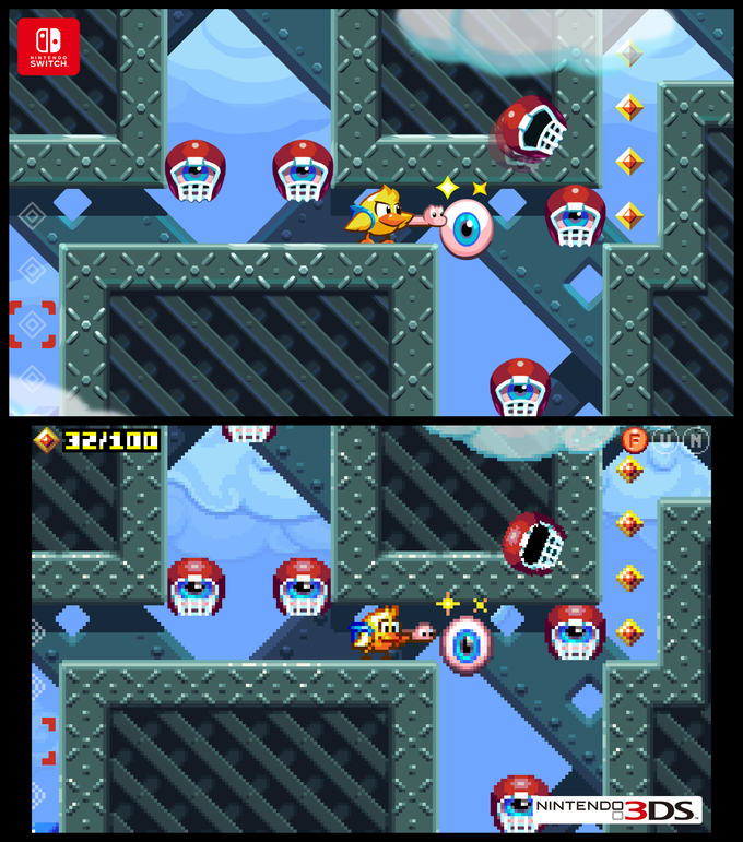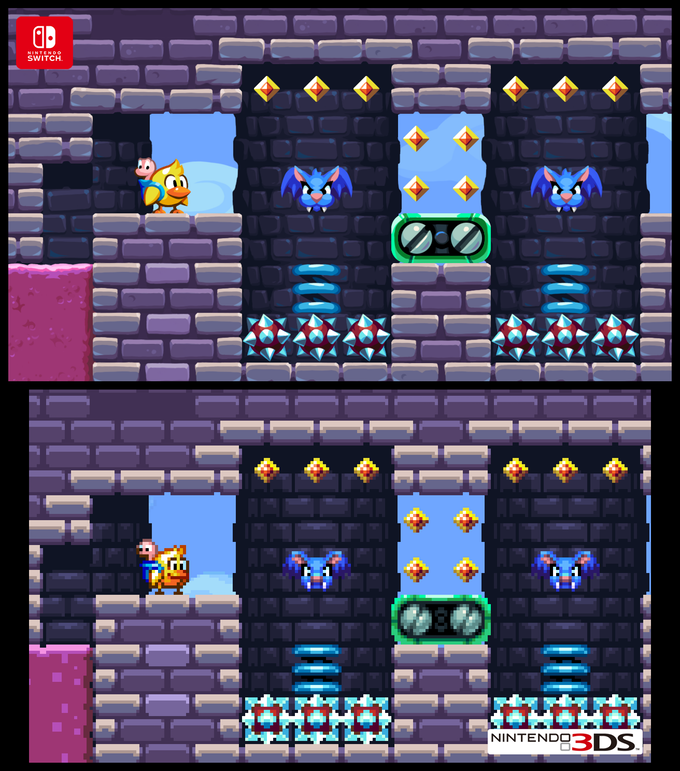 Here are a few comparisons showing how the new art stacks up to the pixel style on 3DS: