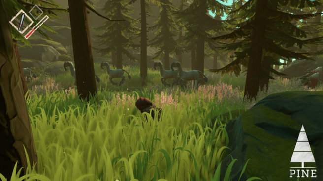 Pine will be set in an open-world environmet with a lot of species that can evolve or devolve due to player actions. Among their inspirations they mention the Zelda series, the nemesis system of Shadow of Mordor and the progression through choices in the Fable games.