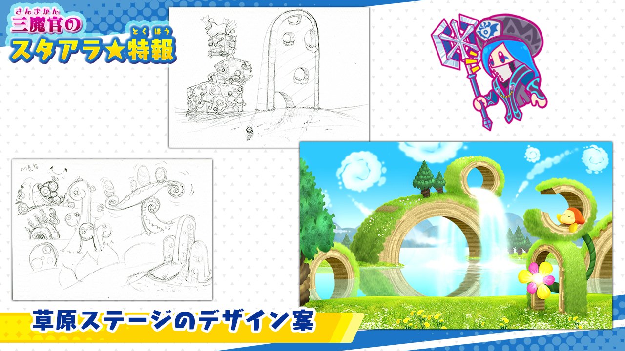 Over the past several months, Nintendo and HAL Laboratory have been posting concept art for Kirby Star Allies. We have the latest images showing the Green Gardens stage. Rough designs are featured in the image above, with a more complete picture shown below.