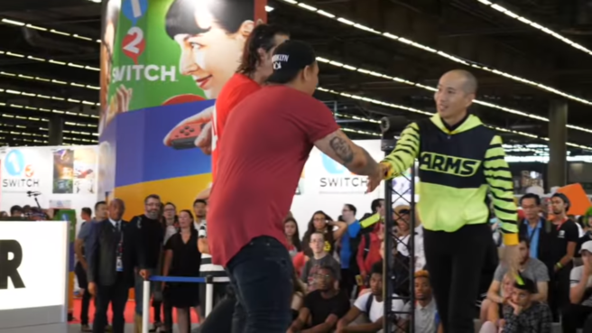 Kosuke Yabuki, the producer of ARMS, was present at Japan Expo in Paris last month to promote the game. He also played a couple of rounds with some attendees. Nintendo of France has published a video (in French) which shows some of the matches. Check it out: